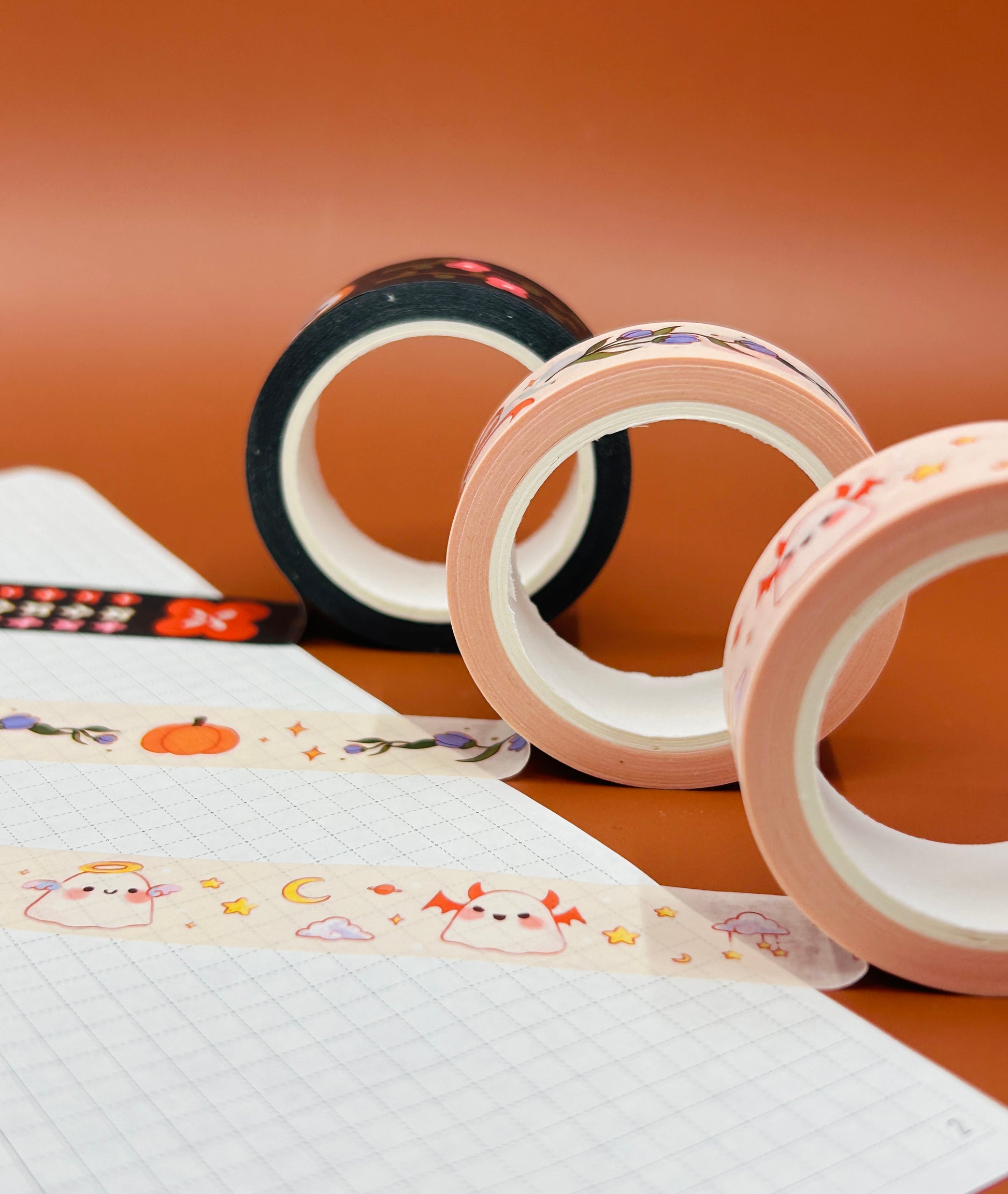 Each roll of washi tape is 15mm (0.59 inches) wide and 10 meters (10.9 yards) long.